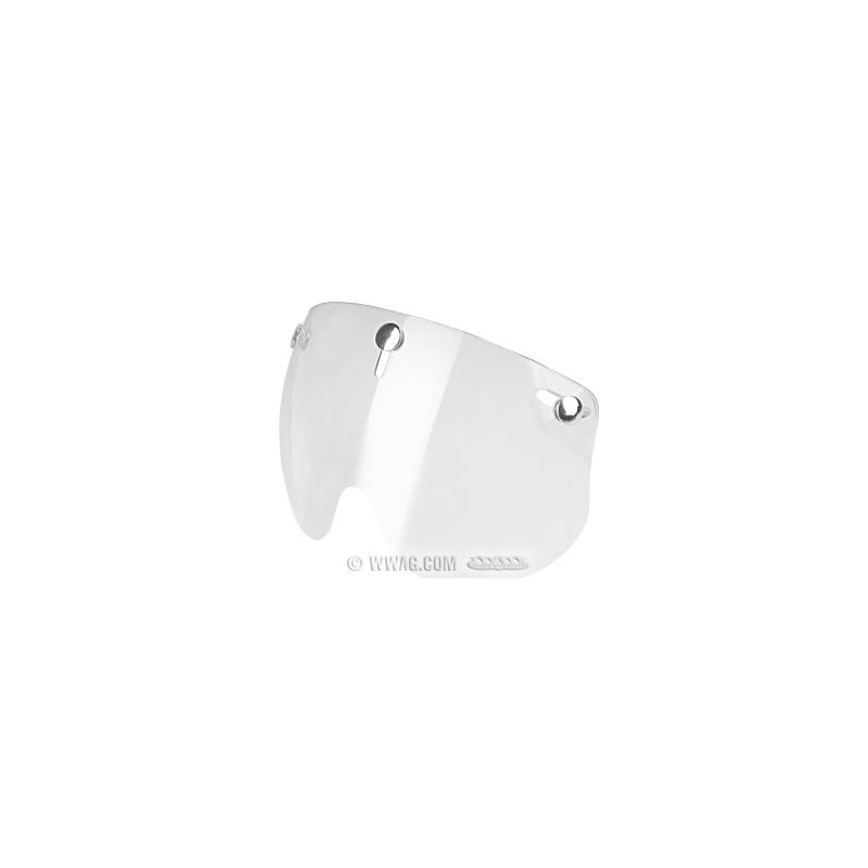 Visiera per casco jet a 3 bottoni di ricambio universale. La visiera è realizzata in policarbonato di colore trasparente. I bottoni si possono spostare in modo tale che questo modello sia compatibile con tutti i modelli di casco a 3 bottoni. Protegge dal vento e dalla pioggia e allo stesso tempo dona carattere al casco.