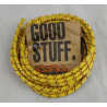 Cavo in rame schermato per il collegamento delle candele del motore della moto. Rivestimento esterno in tessuto intrecciato di colore giallo con filamenti di colore rosso e nero.