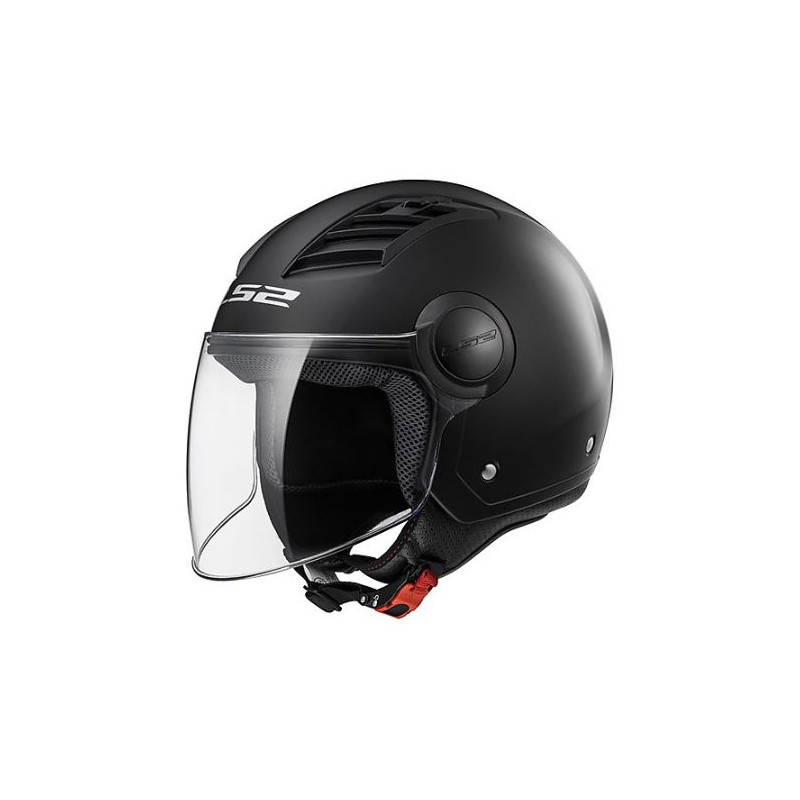 Casco moto Jet nero opaco LS2 con visiera lunga.