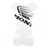 Proteggi serbatoio moto adesivo di colore trasparente con scritta Honda. La protezione è applicabile con adesivo già disponibile nella confezione. Questa protezione è realizzata con uno speciale elastomero poliuretanico, approvato per l'impiego in primo impianto. Si adatta perfettamente ad ogni tipo di serbatoio, proteggendolo dalle abrasioni e dai piccoli urti. Lo speciale collante garantisce un'ottima adesione e tenuta nel tempo. Ideale per dare un tocco di unicità alla vostra moto.