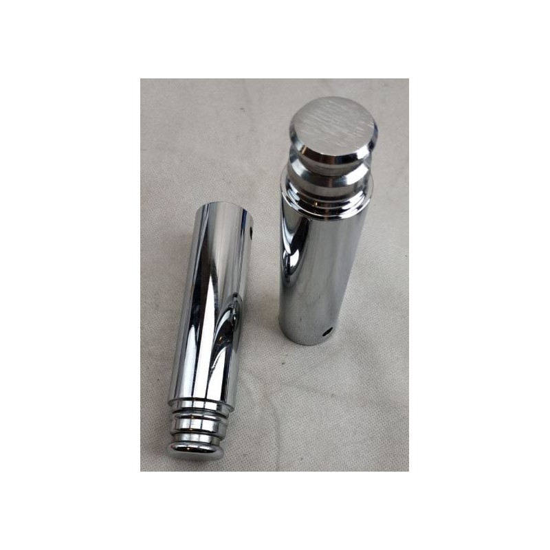 Coppia prolunghe forcelle per moto Yamaha Virago. Le prolunghe sono realizzate in acciaio cromato e allungano la forcella di 120 mm. Si avvitano al posto del tappo della forcella originale.