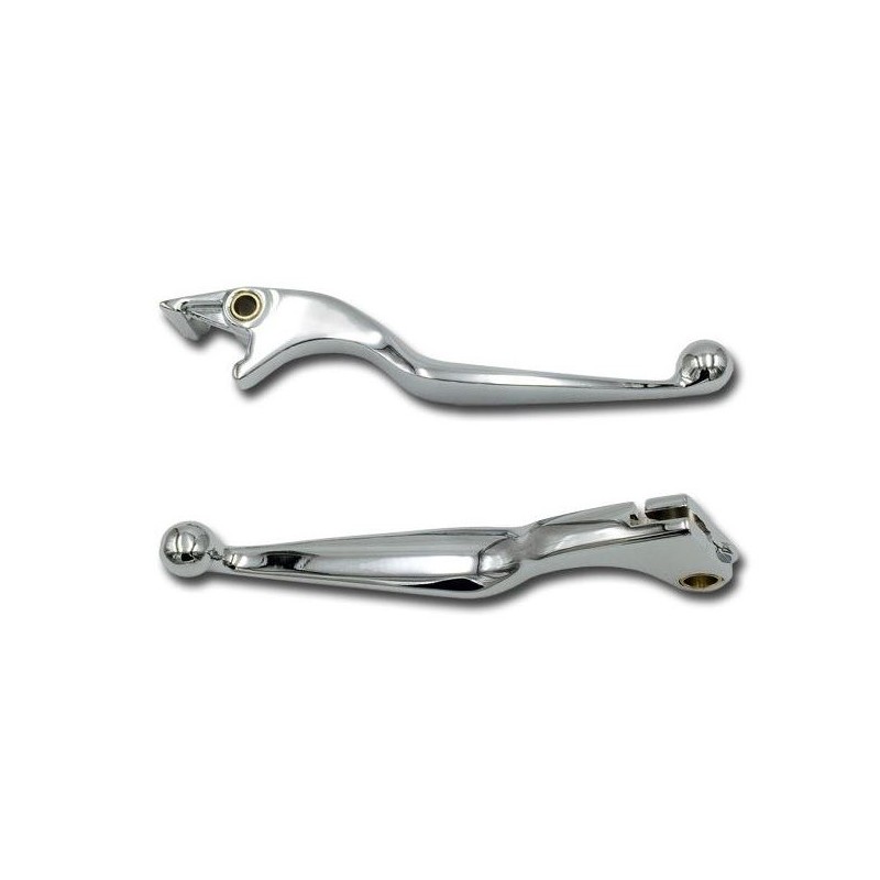 Coppia di leve freno e frizione per moto custom Honda e Yamaha. Entrambe le leve realizzate sono cromate. Ergonimiche per offrire un comfort alto e un design in linea con lo stile custom.