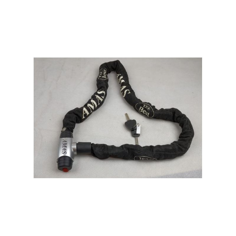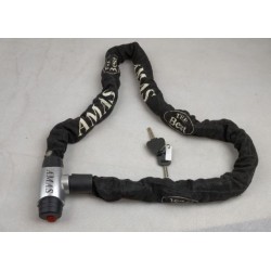 Catena antifurto con lucchetto corazzato in acciaio cementato zincato inattaccabile allo scasso, doppia chiave, cover di protezione in nylon colore nero, catena quadra in acciaio speciale, ricoperta da guaina in tessuto. Ideale per moto, scooter e bici.