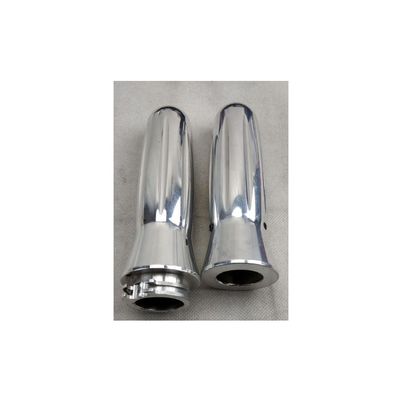 Coppia manopole con tiracavi per moto Harley Davidson. Le manopole sono realizzate in alluminio con finitura cromata e fresature per dare un nuovo look alla vostra moto custom.