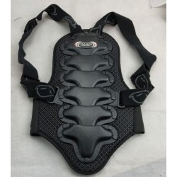 Conchiglia proteggi schiena per bambini a 6 vertebre. Il paraschiena è realizzato in ABS flessibile e morbido di colore nero e tessuto nero traspirante.