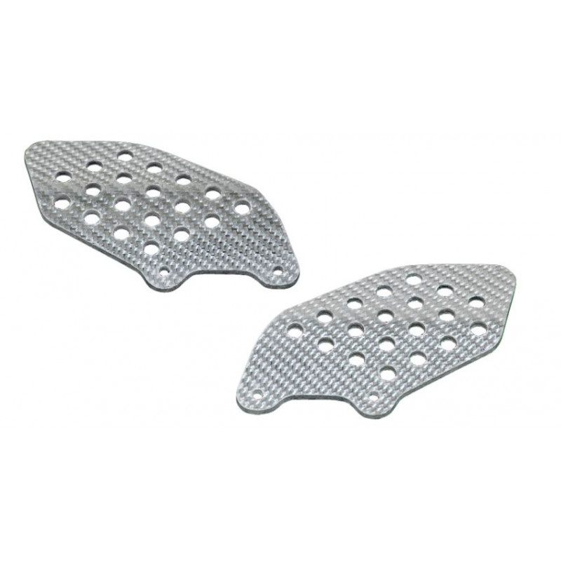 Kit paratalloni realizzati in fibra aluminizzata di colore argento. Ricambio da applicarsi unicamente sulle pedane Rizoma e non per pedane originali o di altri produttori.