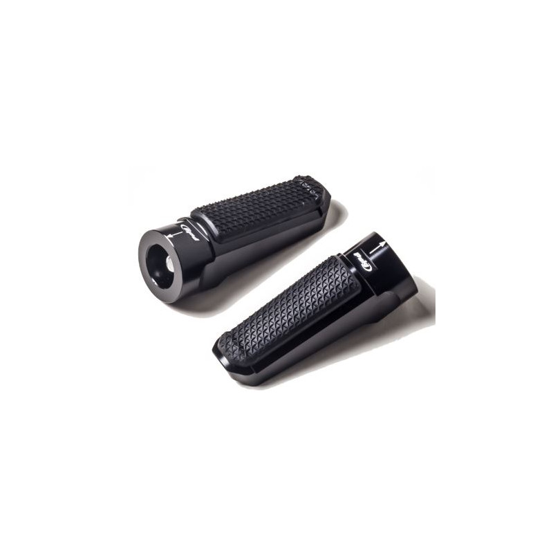 Poggiapiedi modello Sport nero. Kit per cambiare colore e forma ai poggiapiedi delle pedane originali, non si tratta di una pedana ma dei soli poggiapiedi, quindi la posizione di guida rimane invariata. Il poggiapiedi dispone di una gomma antiscivolo. Dimensioni (Lxh): 72x27 mm. Peso: 90 gr. Inclinazione Regolabile.